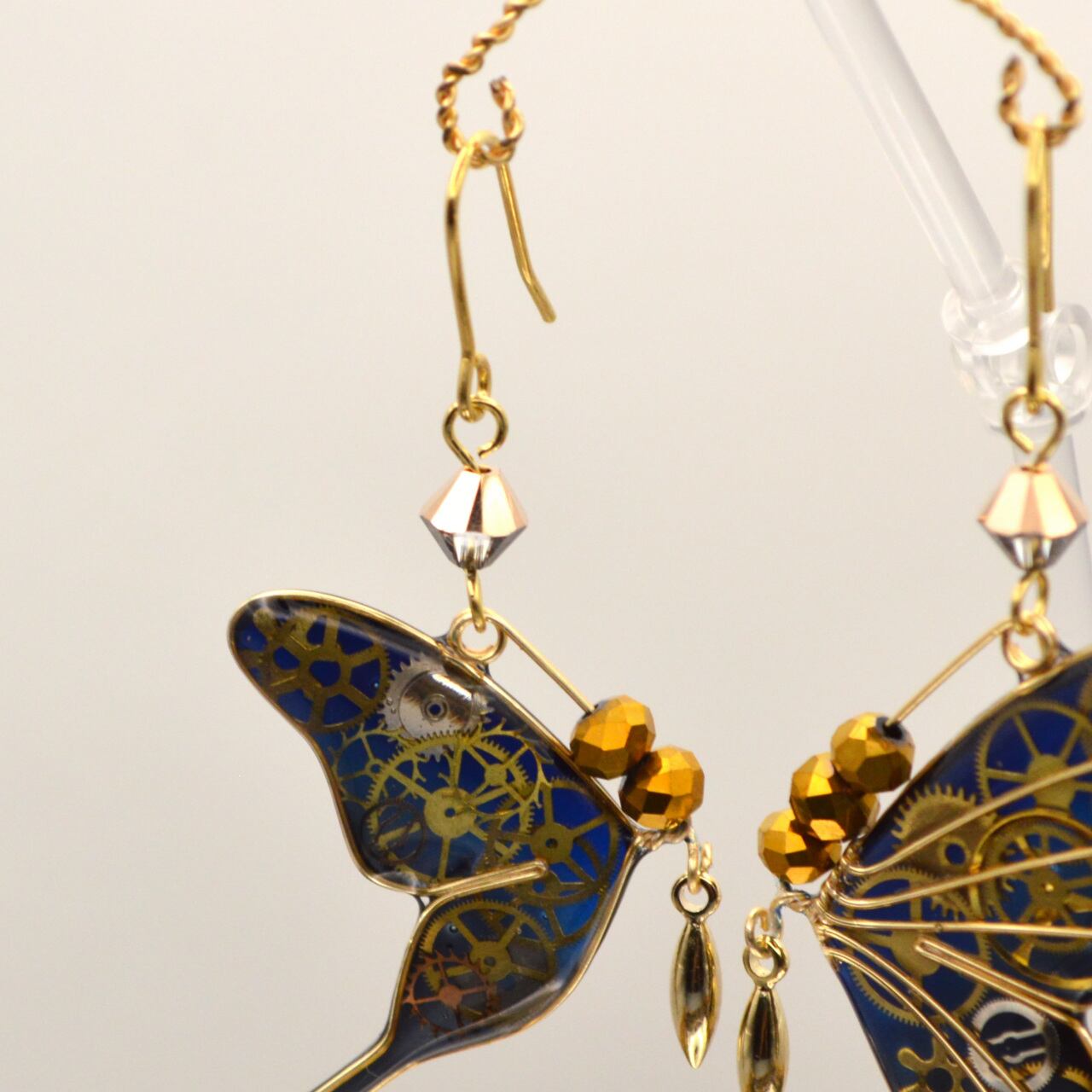 翅の中には、腕時計に使われていた本物の歯車を封入しています。