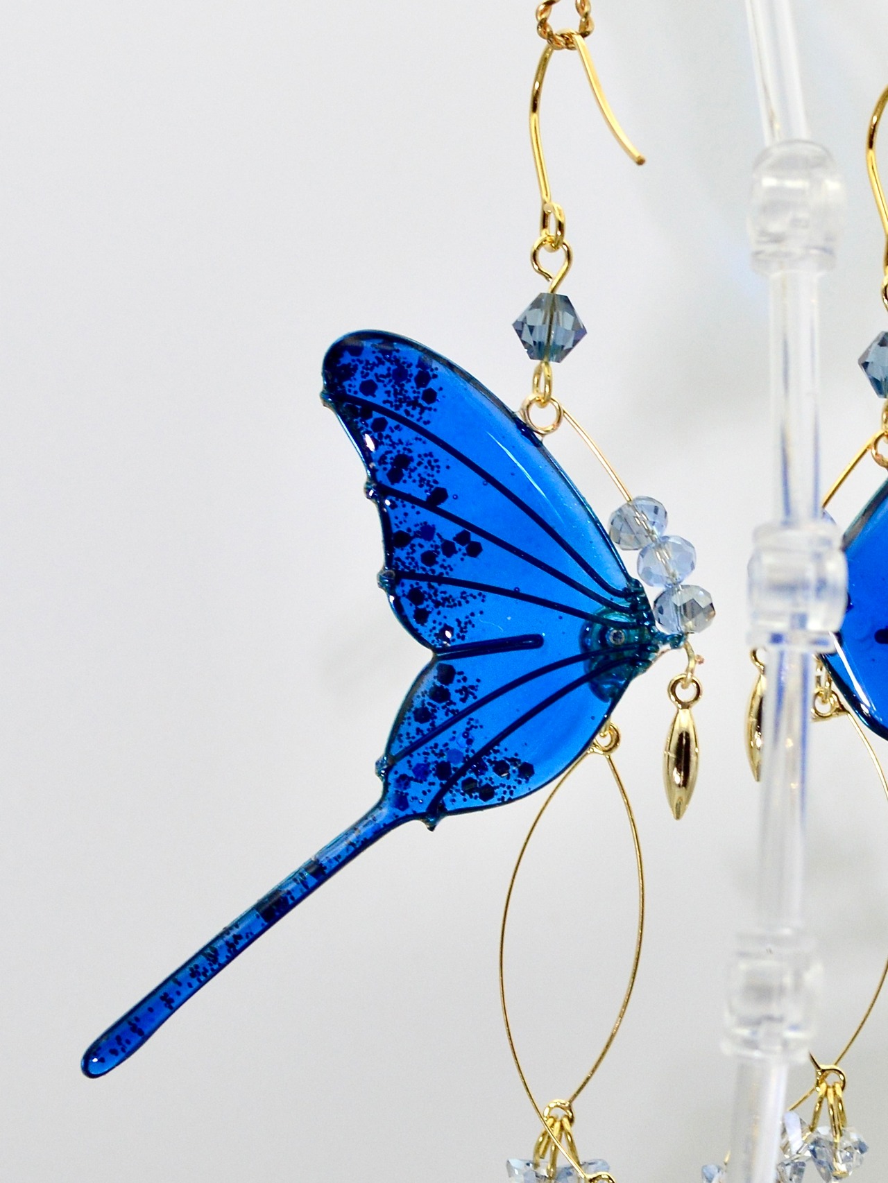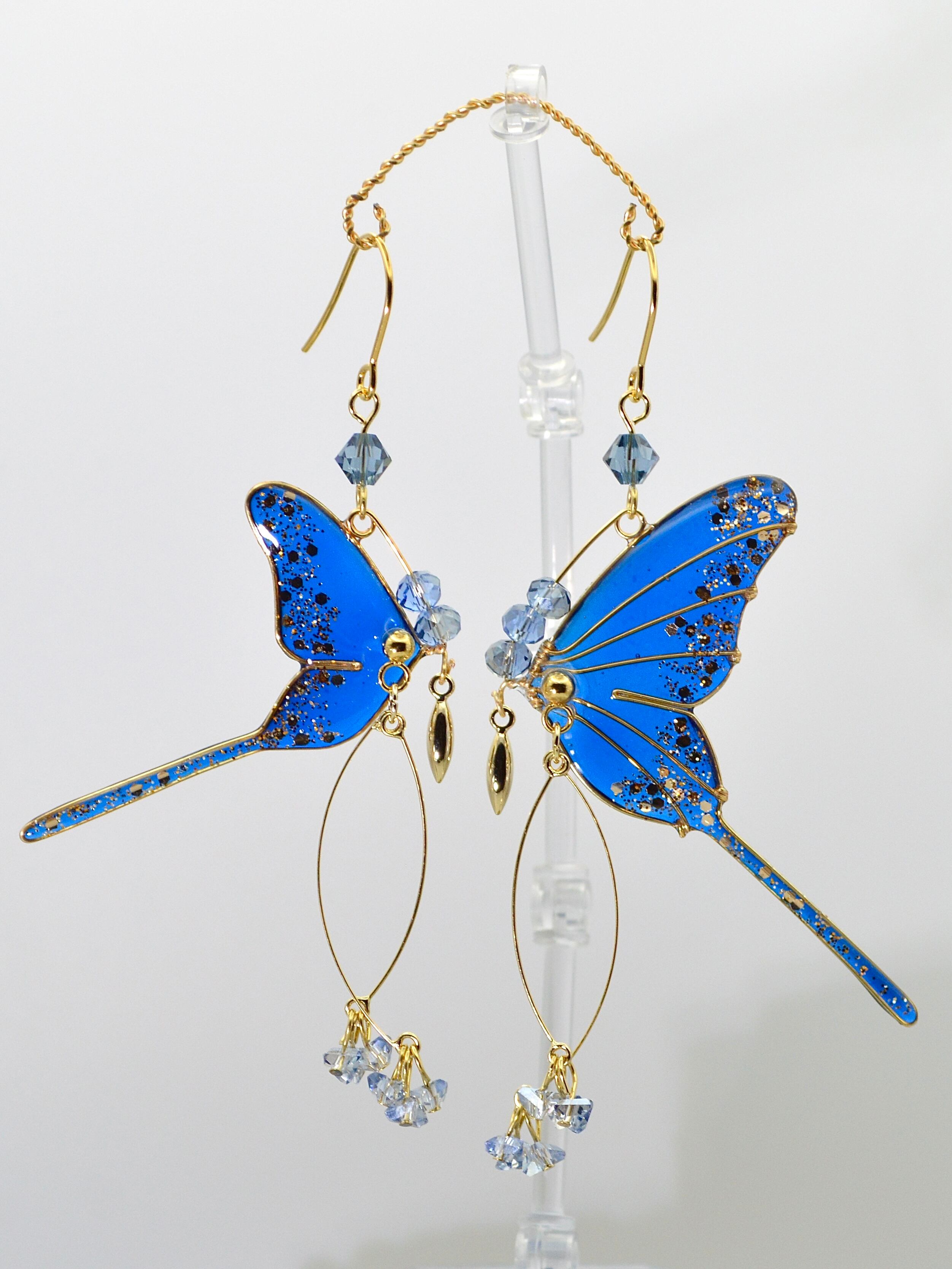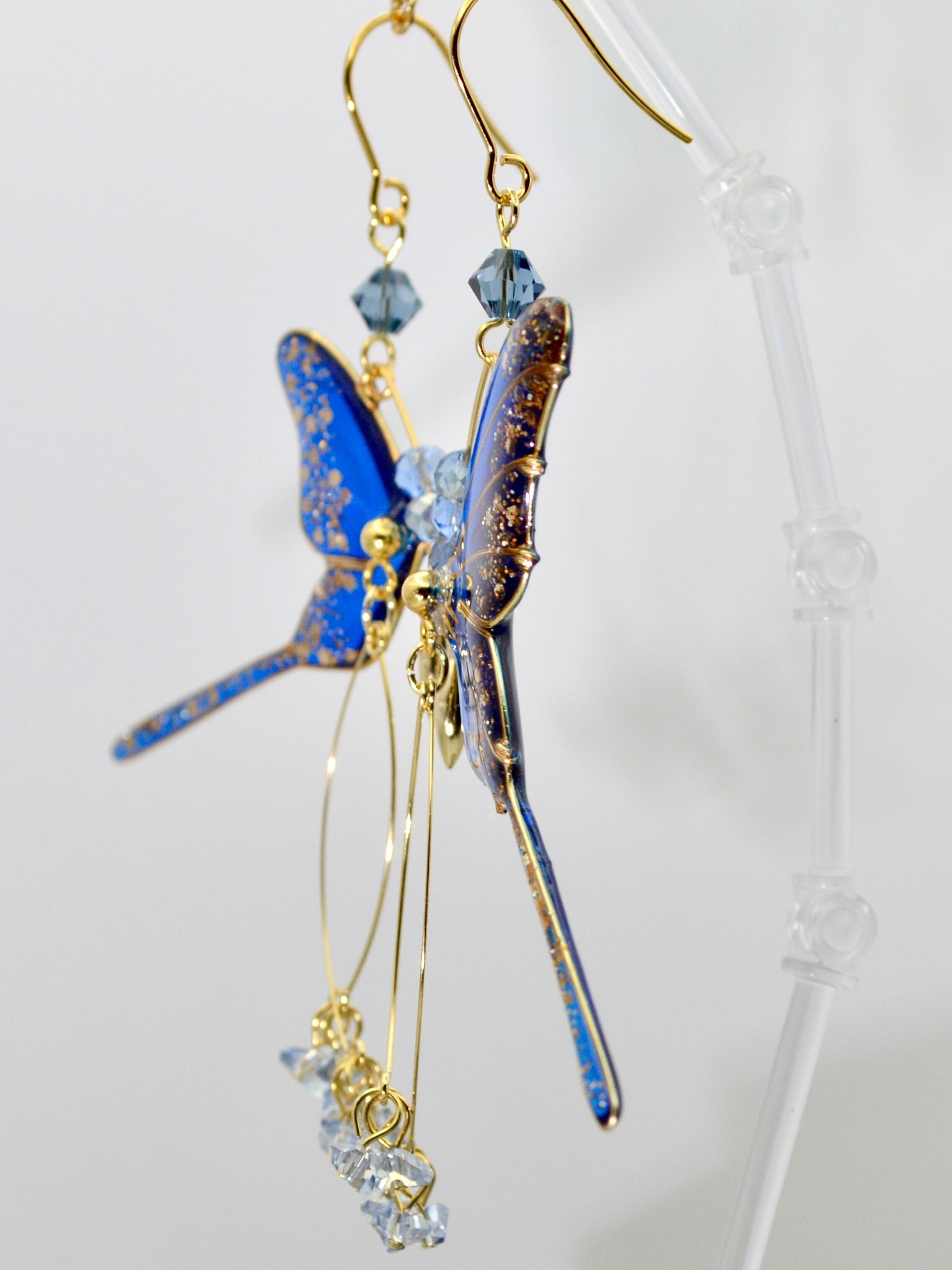 左右でひとつの物語を紡ぐ、対となる蝶の羽ピアスです。