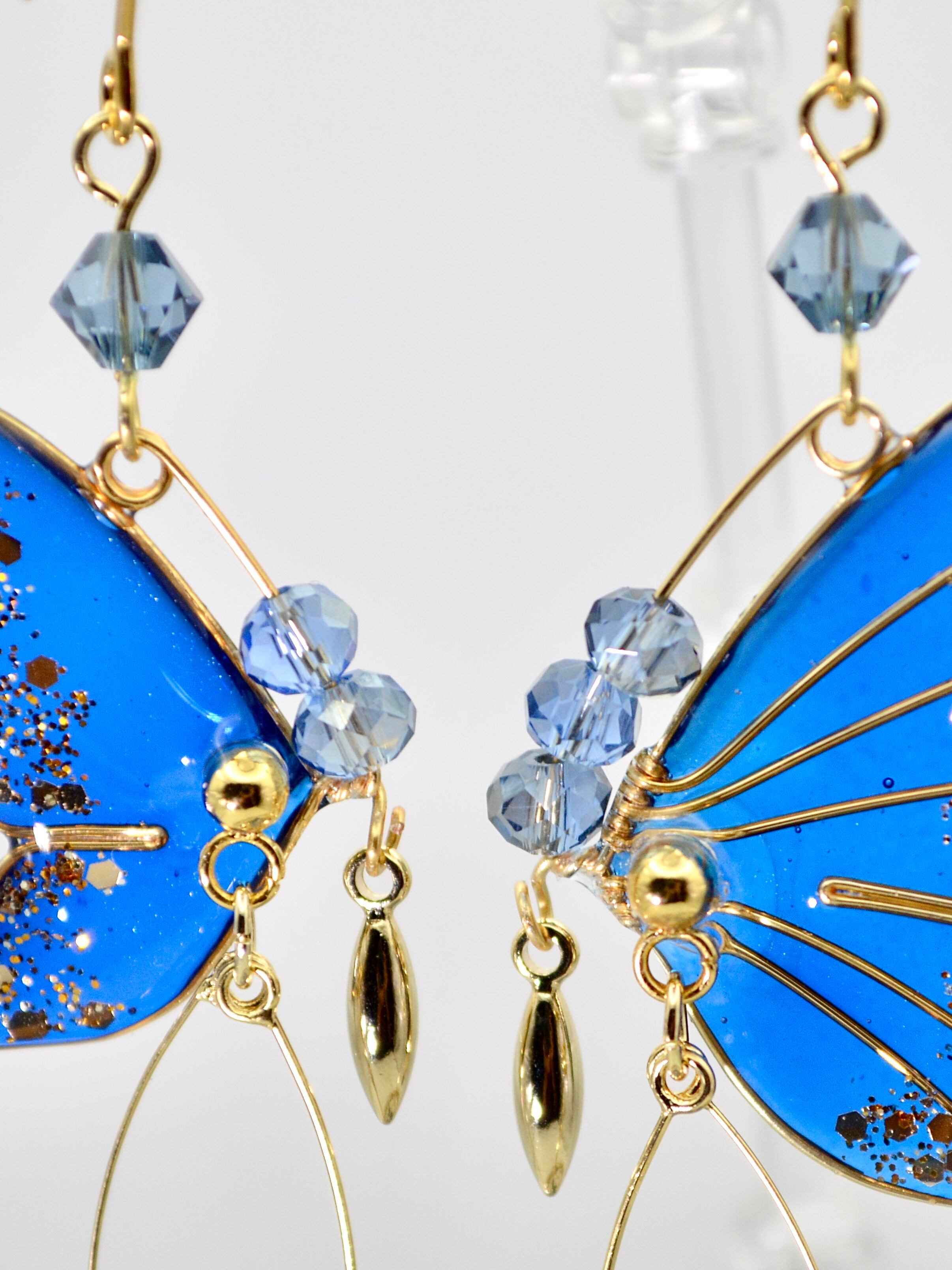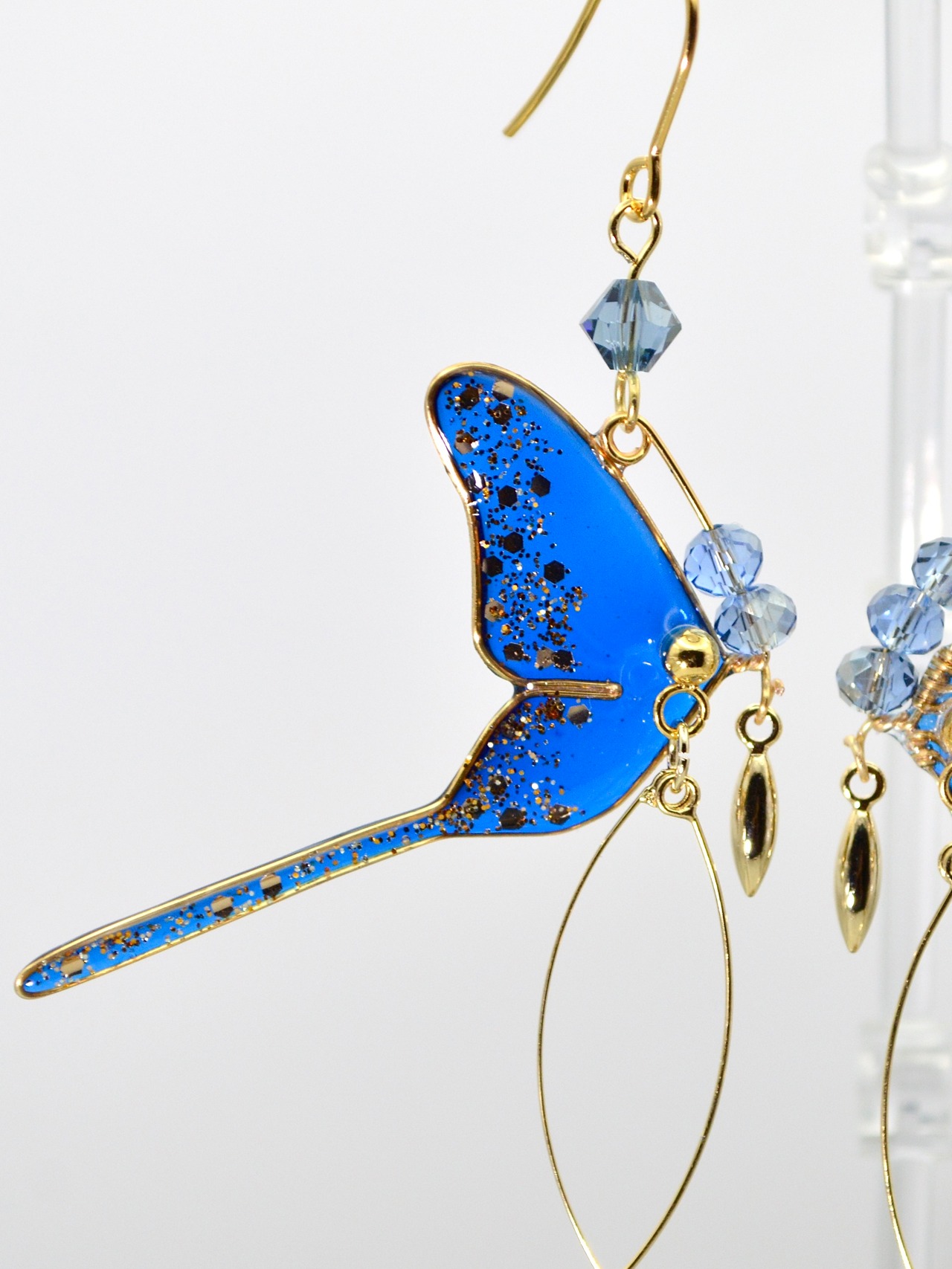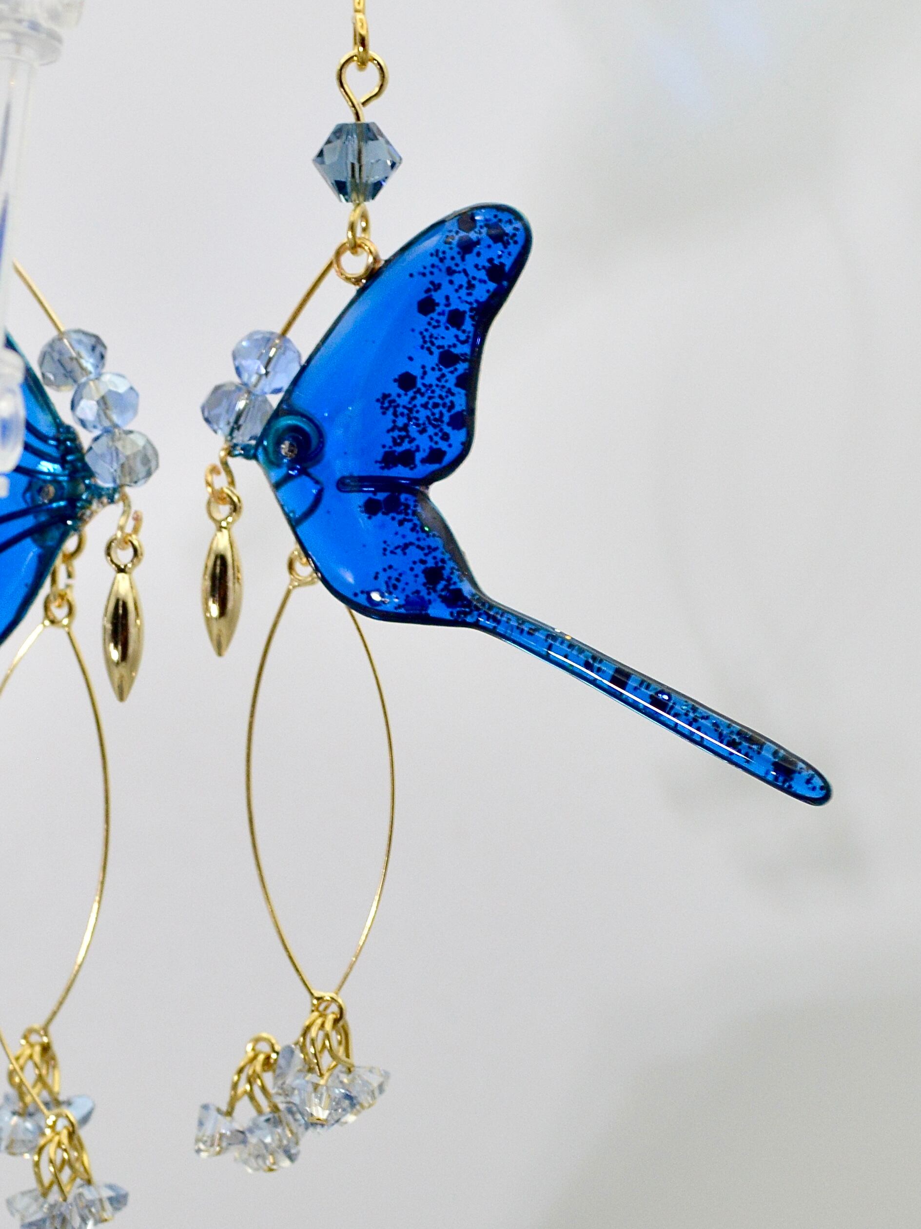 光を受けるたび、羽先に散らしたゴールドラメが星屑のように瞬き、まるで羽ばたくたびに煌めきを落としていくかのよう。